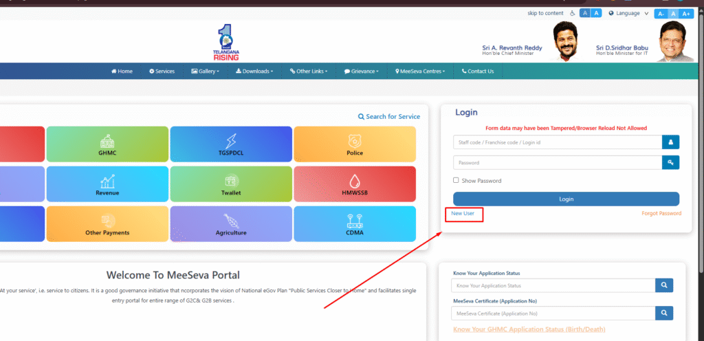 Step 1: Go to ts.meeseva.telangana.gov.in.